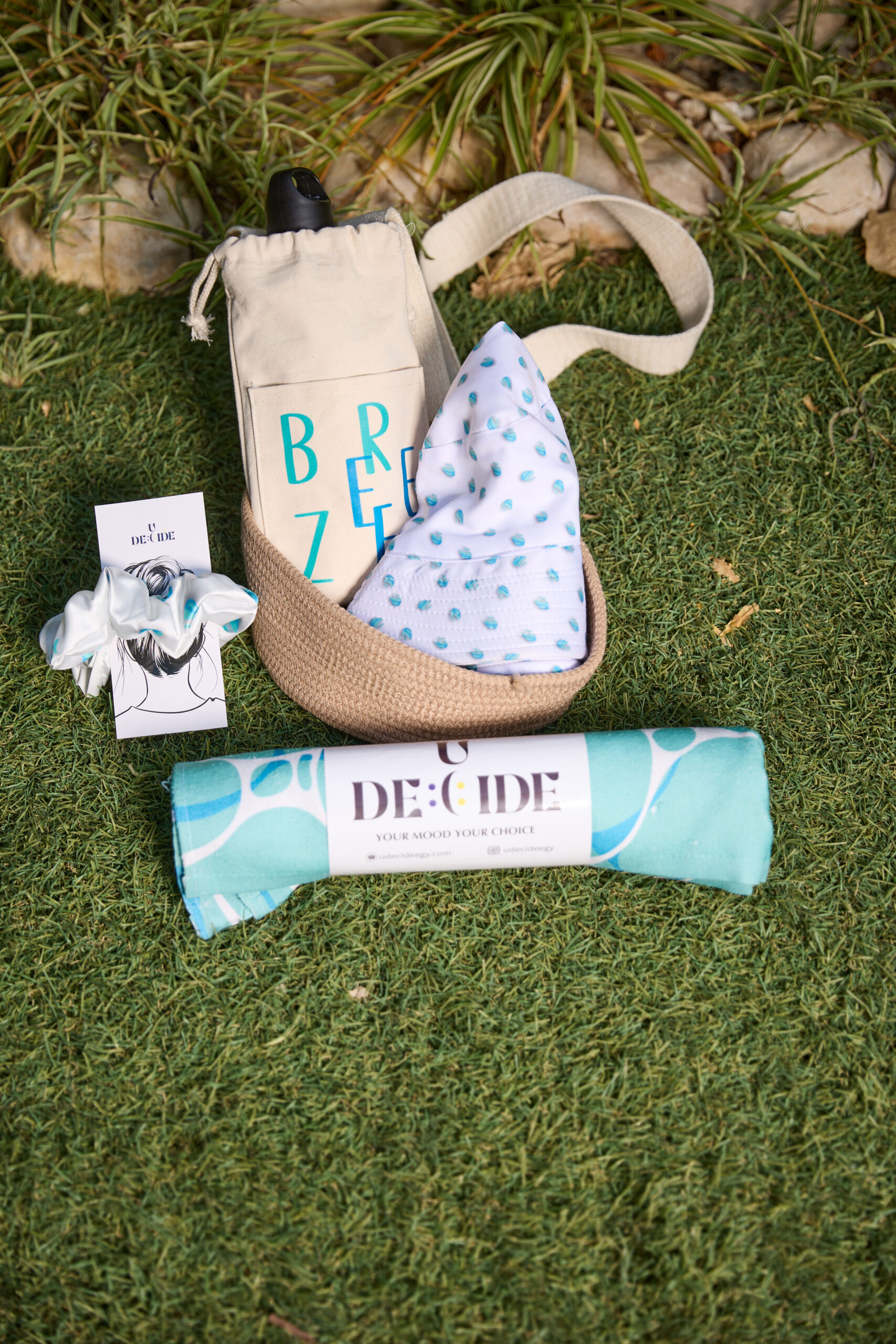 Bottle Bag – Bucket hat – Beach towel – Free scrunchie